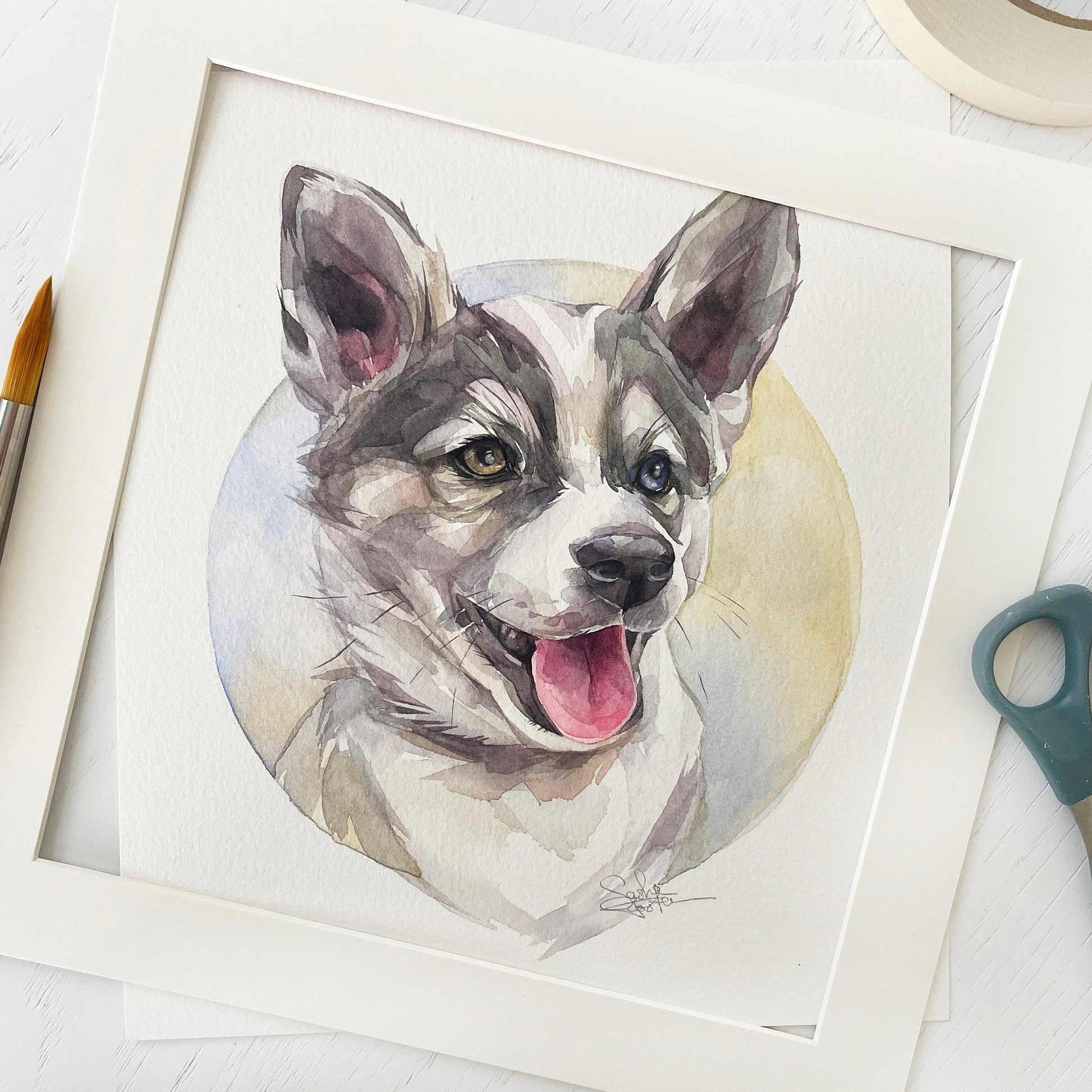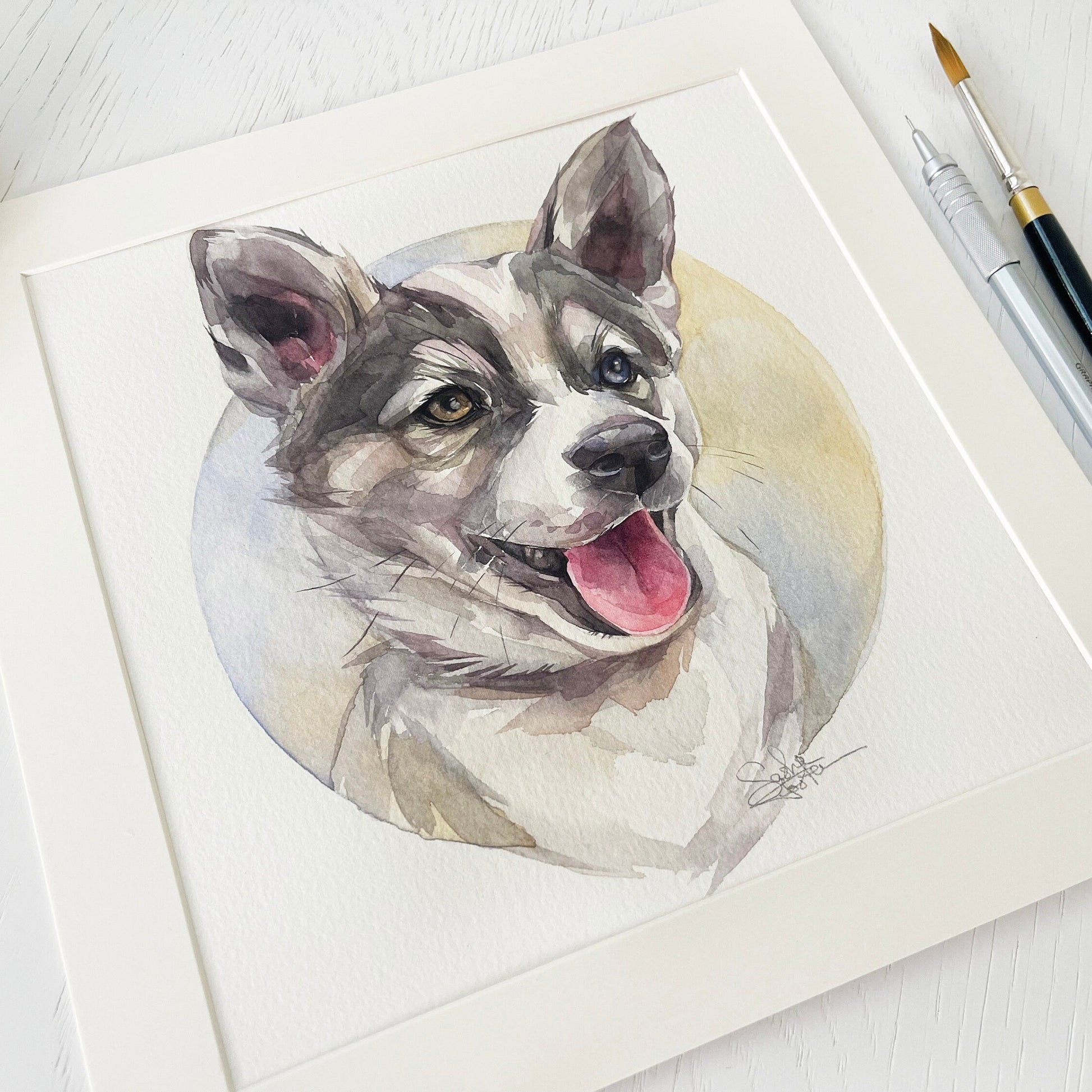 Albert the Husky - Original hand painted watercolor made on 100% cotton hot -pressed watercolor paper with professional vibrant watercolor paints