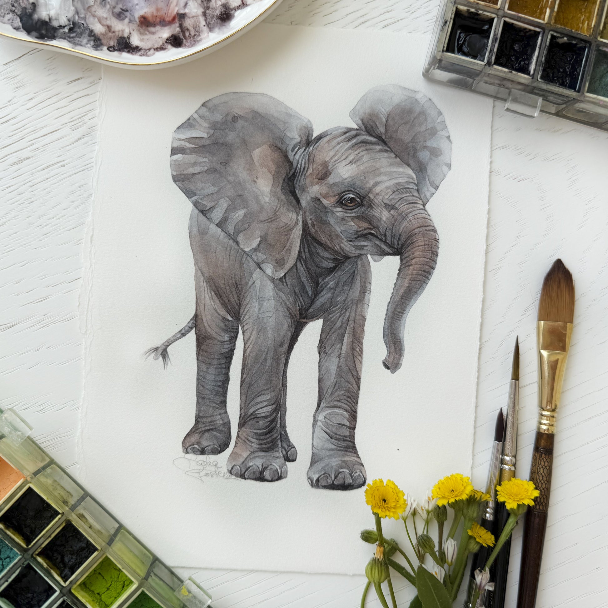 Baby Elephant. Original watercolor painting.