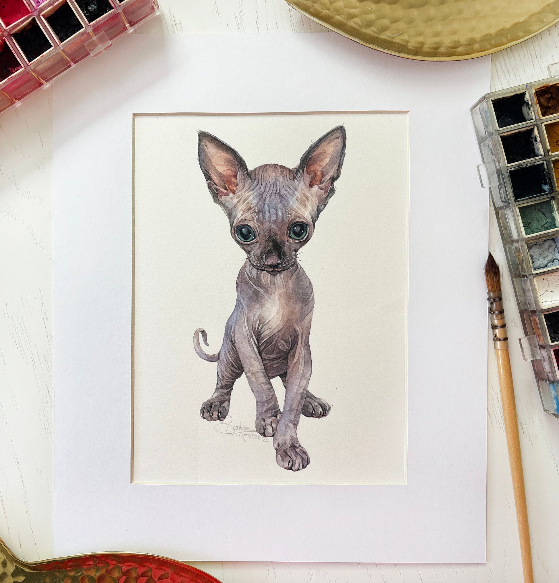 Sphynx Kitten. Original watercolor painting.